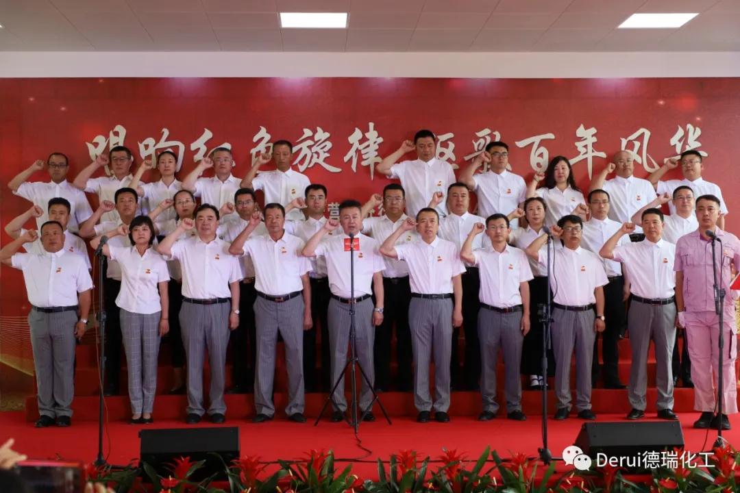 伴隨著嘹亮的《黨旗頌》,四名旗手邁著整齊矯健的步伐擎旗入場,劉至尋率“三征”系各公司中高層黨員代表在鮮紅的黨旗前重溫入黨誓詞。